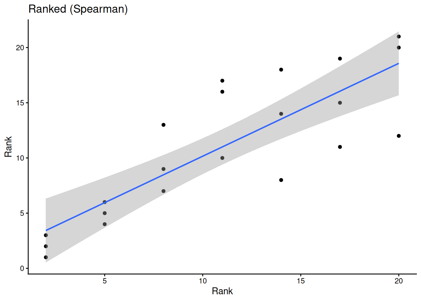 labs(title = "Ranked (Spearman)", x = "Rank", y = "Rank") +