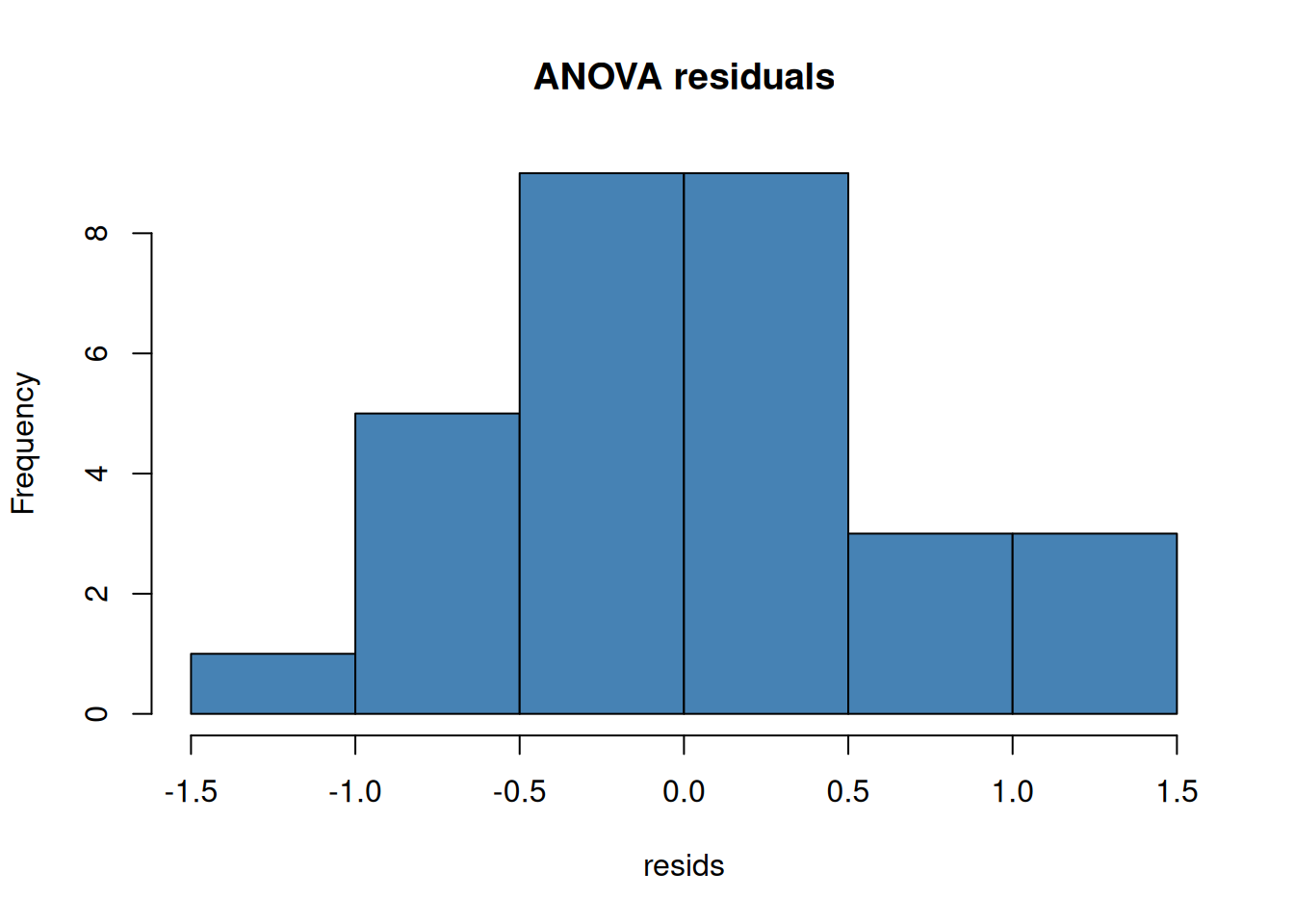 hist(resids, main = "ANOVA residuals", col = "steelblue")
